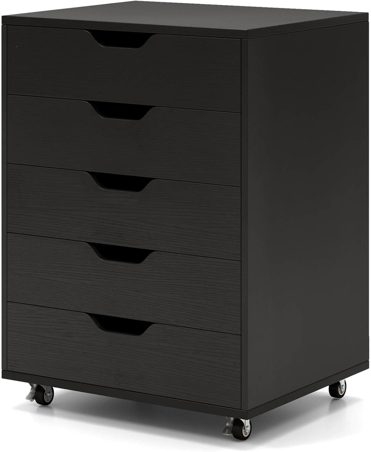 Costway Black 5-Drawer Rolling Storage Cabinet with Lockable Wheels